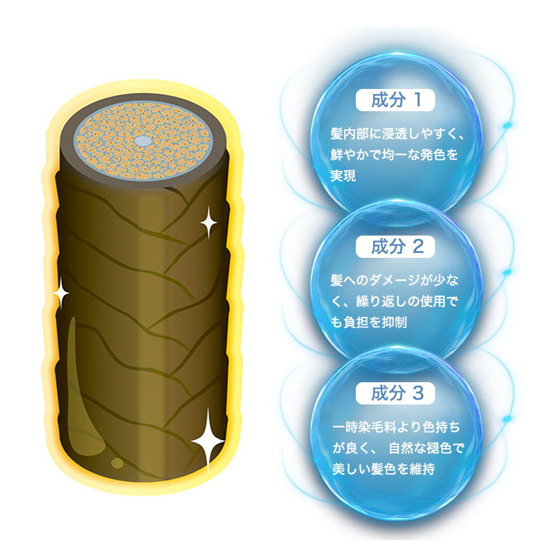 色づき、洗う・染める・補修を同時に叶え、やさしい